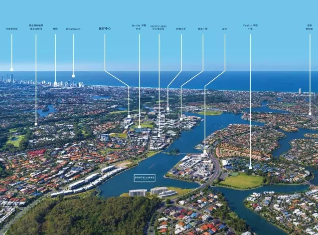 South Lakes 南湖,地处黄金海岸地理位置的中心,是Varsity Lakes正对着奥尔湖的唯一东北面水的滨水住宅项目。主要户型为两房,两房加书房和三房为主,这里位于黄金海岸名校区,位置极佳。它是varsitylakes最后的重要水边项目之一,也是唯一的东北临水景致主要开发项目。CBD区和政府重点发展城区以及主要人口增长中心。