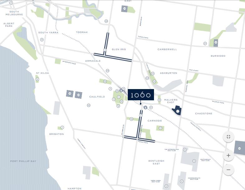 1060公寓位于墨尔本东南富人区Carnegie区,Carnegie区是墨尔本的一个已建成的繁华郊区,拥有长期稳定增长的住宅市场。该区距离墨尔本市中心约10公里,毗邻Malvern East和Caulfield区,是墨尔本名副其实的传统富人区、精英学府区和热门居住区。